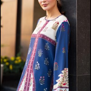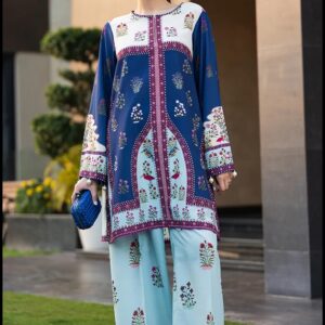 A timeless embroidered co-ord set in a soft cotton satin blend, paired with a luxurious mint silk scarf. Available in two stunning colors, perfect for festive and casual elegance.