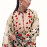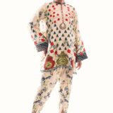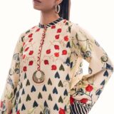 Infuse freshness into your wardrobe with this ivory co-ord set, showcasing a striking blend of bold floral motifs and contemporary geometric patterns. The kurta features a sleek neckline and contrast cuffs, perfectly complemented by matching tapered trousers — ideal for festive brunches, garden parties, or daytime celebrations.