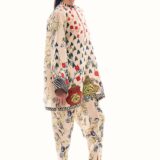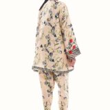 Graceful ivory co-ord set adorned with vibrant floral and geometric prints.