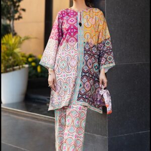 This elegant two-piece co-ord set is crafted from premium crepe fabric, offering a luxurious drape and unmatched comfort. The design features a striking monochrome abstract print that adds a contemporary artistic flair. The top comes with a relaxed silhouette, button-down front, and dropped shoulders for a modern, easygoing fit. Paired with wide-leg trousers adorned with matching bold patterns, the outfit creates a perfectly balanced, statement-making look.