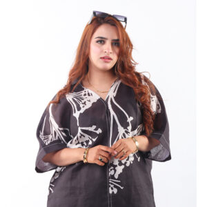 A premium black-and-white crepe co-ord set featuring bold abstract prints, a button-down top, and wide-leg trousers. Lightweight, flowy, and effortlessly stylish—perfect for chic everyday wear or elevated casual outings.