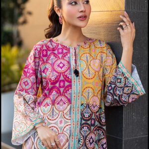 This elegant two-piece co-ord set is crafted from premium crepe fabric, offering a luxurious drape and unmatched comfort. The design features a striking monochrome abstract print that adds a contemporary artistic flair. The top comes with a relaxed silhouette, button-down front, and dropped shoulders for a modern, easygoing fit. Paired with wide-leg trousers adorned with matching bold patterns, the outfit creates a perfectly balanced, statement-making look.