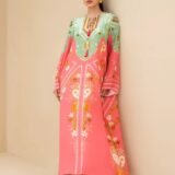 Effortless elegance meets comfort – this flowy printed kaftan comes in two vibrant variants, Coral Pink and Mint Green, designed for both casual chic and festive charm.